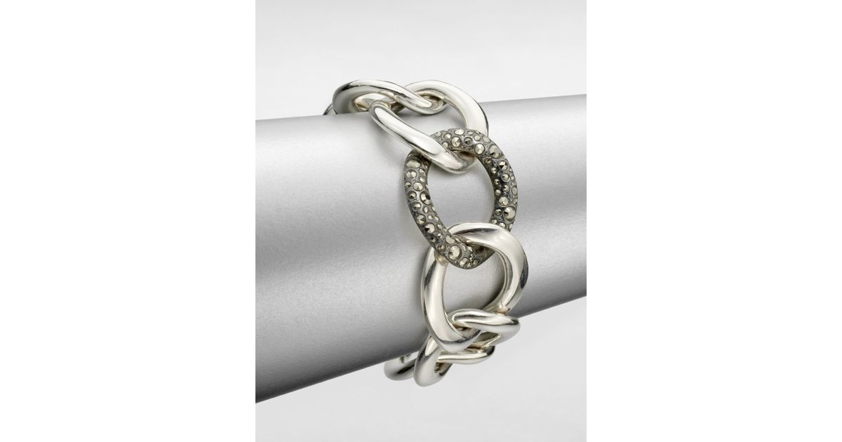 Lauren by Ralph Lauren Rolo Link Bracelet. A perfectly imagined link bracelet crafted from rounded interlocking circles with a shiny silver-tone sheen and toggle closure. Mixed metal. 8.5" Material Number 1076256 18924. Judith Jack Reversible Pendant. Delicate pendant in sterling silver is studded with sparkling Austrian crystals and genuine ... Visit Document